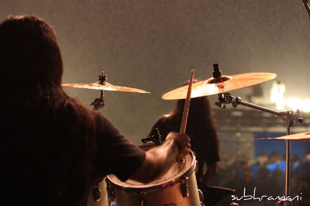 Next on-stage was Bangalore’s Inner Sanctum. This band has been getting progressively better with each gig, and by far, their performance at this show was the best I’ve seen in a while. Their stage presence was nothing short of explosive, and thankfully, the sound was decent, and that’s the least a band can ask for. Their set-list consisted of some older stuff from the ‘Provenance’ EP, as well as a couple of new tracks. Inner Sanctum was mind-blowing, to say the least, and luckily for them, the rain gods seemed to have waited for them to finish because just when they got off stage, the skies opened up.